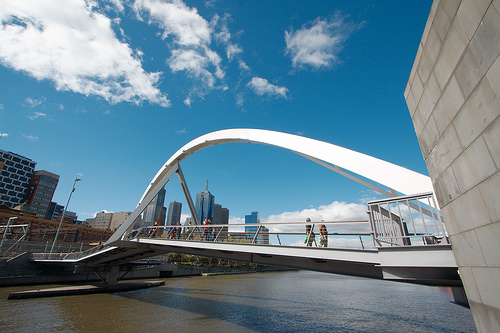 22 kwietnia 1840 roku rozpoczęto budowę mostu łączącego oba brzegi rzeki Yarra. Sam wybór lokalizacji mostu nie odbył się bez kontrowersji. Jednym z wyborów był koniec Elisabeth Street, gdzie rzeka miała 6 metrów głębokości oraz muliste dno, drugim – wybranym przez firmę konstrukcyjną, Swanson Street, gdzie głębokość rzeki wynosiła jedynie dwa metry, lecz podłoże było twardsze i stabilniejsze. Wygrała druga koncepcja. Początkowo samo przejście mostem było płatne.